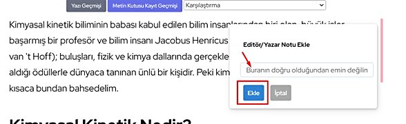 Bir tüyo daha: Emin olamadığınızda, editörünüze not bırakmak için istediğiniz bir metni tarayıp, aşağıdaki ikona basabilirsiniz:
