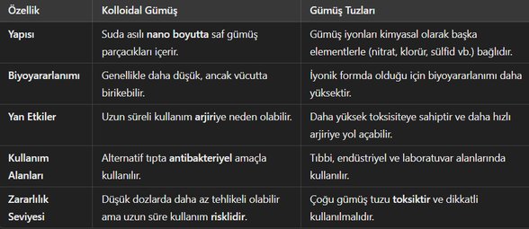 Diş Hekimliği Uygulamaları: Başka bir araştırmada, kolloidal gümüş suyunun kompozit rezinlerin renk stabilitesi üzerindeki etkisi incelenmiştir ve renk değişikliklerine neden olabileceği, ama bu renklenmelerin polisaj işlemi ile giderilebileceği belirtilmiştir.
