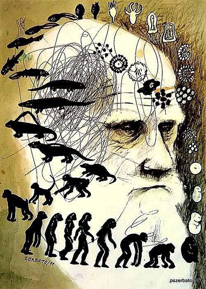 Zerbato’nun Darwin’i betimlerken sağ kaşının üst bölümüne “mi fi (Latince “benim oli”) ibaresine benzer kaligrafik bir şey yazdığını fark ettiniz mi?