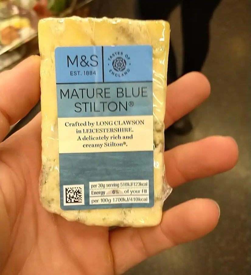 Dedektifler, bu kulanıcı tarafından paylaşılan bir fotoğrafa odaklandılar: Bir Marks & Spencer dükkanında çekilmiş bir kalıp mavi Stilton peyniri fotoğrafına...