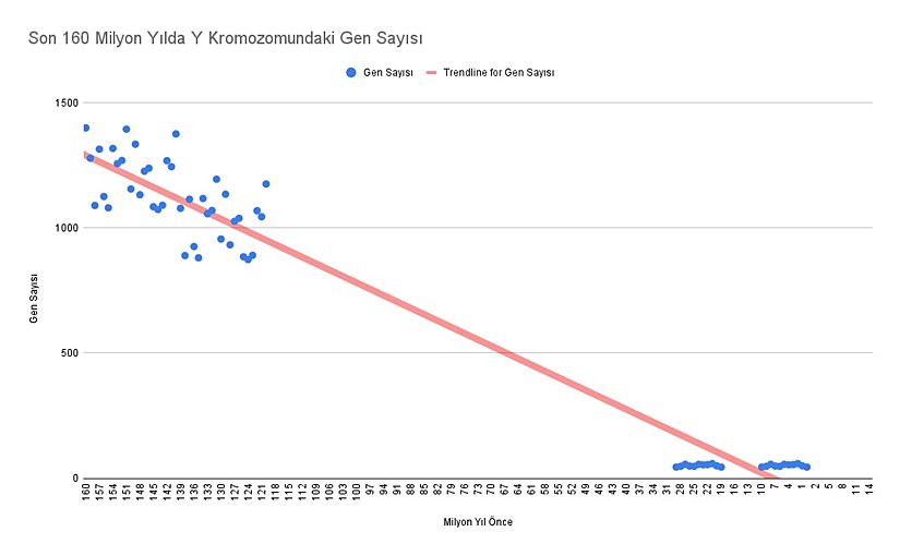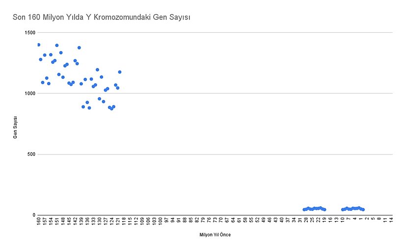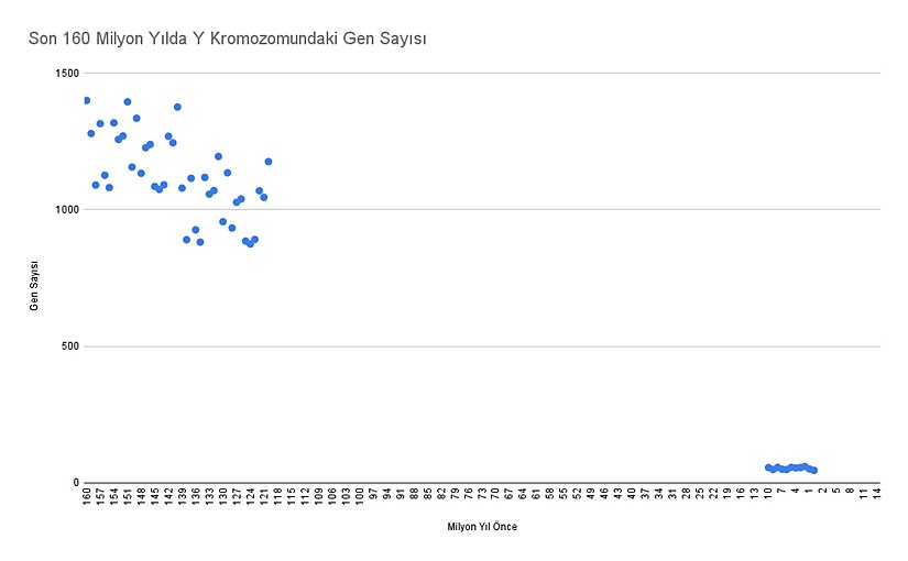 - Y kromozomu, memelilerde 160 milyon yıl önce yaklaşık 1400 gen içerirken günümüzde sadece 45 gene sahip olup, bazı bilim insanları yok olabileceğinden endişe etmektedirler.