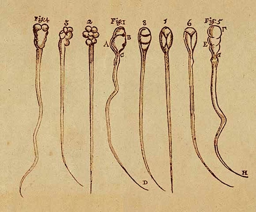 Leeuwenhoek 17. yüzyılın son çeyreğinde kendi semeninden (dölünden) bir damlayı mikroskobun altında inceler ve hareket eden mikroskobik hayvancıklar (animalcule) görür. İlk kez o zaman gözlemlenen bu hareketli hücreler, eşeyli üremenin vazgeçilmez yarısı, iki önemli parçasından biri olan spermlerdir.