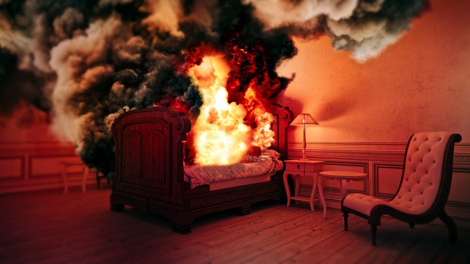 Bunaltıcı bir gün... Koltukta oturmuş, günün stresini atmaya çalışıyorsunuz. Birdenbire terlemeye başlıyorsunuz, mideniz bulanıyor, kendinizi berbat hissediyorsunuz. Normal olmayan bir şeyler var. Birkaç düğmenizi aralayıp nefes almaya çalışıyorsunuz ama nafile... Burnunuza tuhaf bir yanık kokusu gelmeye başlıyor. Olduğunuz yerde şöyle bir doğruluyorsunuz ama mutfakta yanan bir şey yok. Korkuyla etrafınıza bakınıyorsunuz ve korkunç gerçeği fark ediyorsunuz: Vücudunuzdan dumanlar çıkıyor! Sıcaklık hızla artıyor, artık dayanılmaz boyuta ulaşıyor ve siz ne olduğunu daha anlayamamışken, birden alev alıyorsunuz!