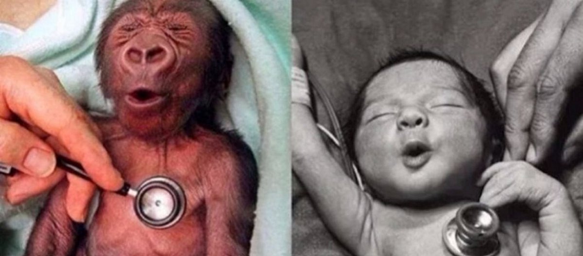 Daha önceden 1999 senesinden kalan şu fotoğraftaki goril yavrusunun stetoskobun soğuğuna tepkisini göstermiştik. Bu seferse bir internet kullanıcısı tarafından hazırlanan bu fotoğrafı paylaşmak istiyoruz. Evrim Ağacı'nda birbirine çok yakın iki dalda bulunan iki hayvan türünün yavruları ve soğuğa verdikleri tepki...