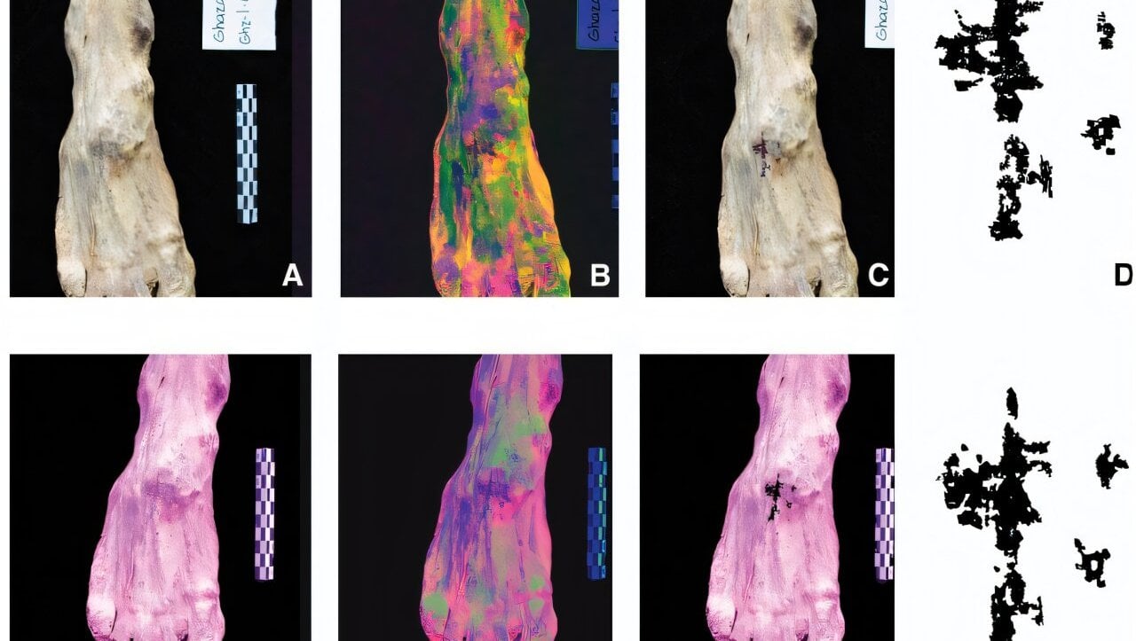 Araştırmacılar, kazı sonrasında yaptıkları analiz sırasında bireyin ayağında renk farkı olduğunu fark etti. Ekip, böylece tam spektrumlu görüntü analizini ve DStretch isimli görüntü iyileştirme yazılımı kullanılarak bireyde yaklaşık 16 x 26 mm boyutlarında küçük bir dövme tespit etti.