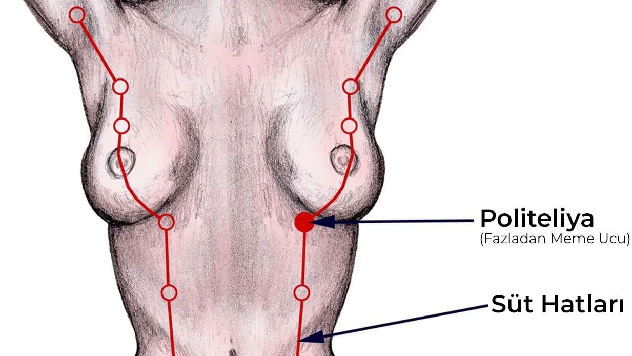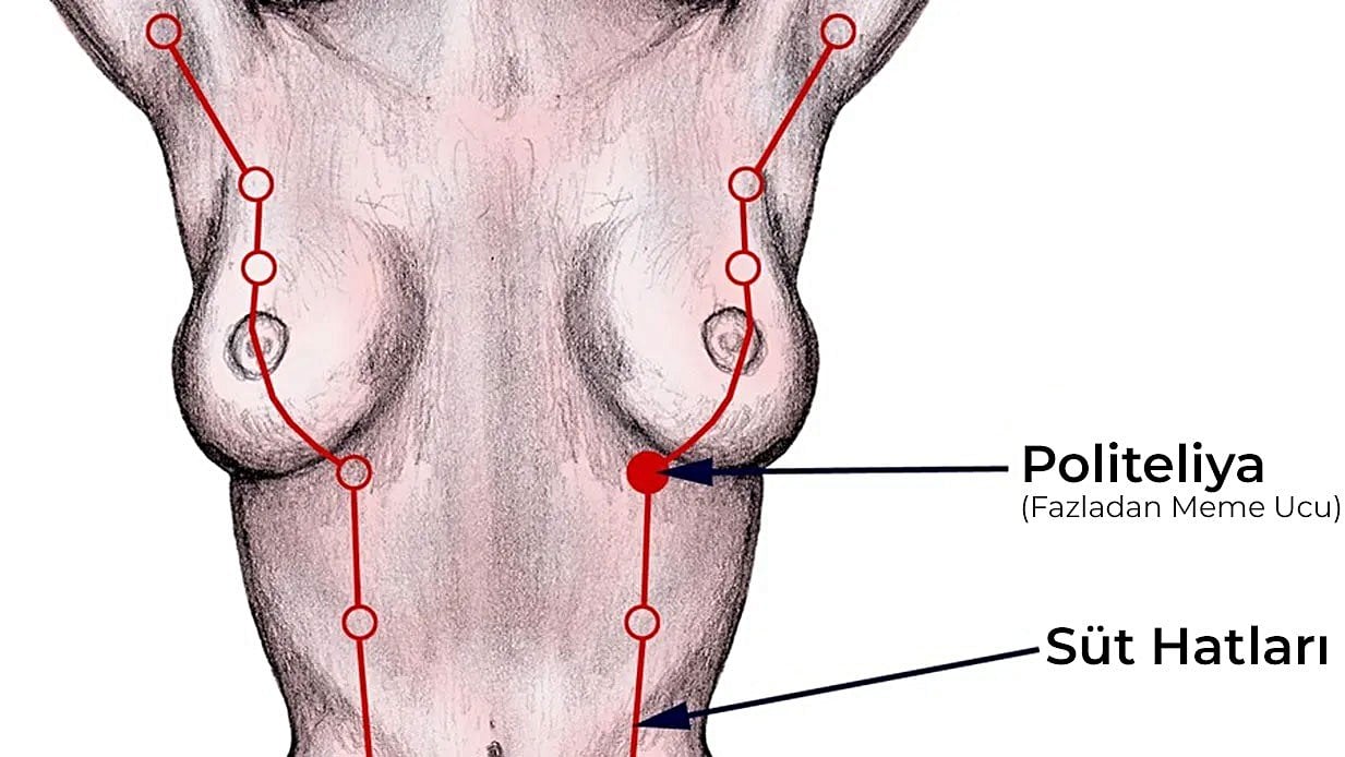 İnsanlarda süt hattı gebeliğin 7. haftasında oluşmaya başlar ve 8 ila 9. haftada, göğüs üzerindeki "normal" bölgede meme ucu üretilir. Daha sonradan meme hattı duraklar ve körelir. Fakat kimi insanda bu körelme düzgün gerçekleşemez ve uzak kuzenlerimizde olduğu gibi fazladan meme uçları üretilebilir. En eski memeli atalarımızda meme sayısı daha çok olduğu için, bu atasal bir karakterin ortaya çıkması olarak düşünülebilir.