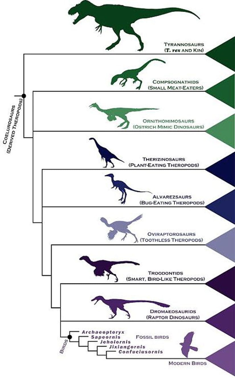 68 milyon yıllık bir Tyrannosaurus rex (T. rex) fosilinden izole edilebilen ufak bir protein parçasının, günümüzde yaşayan 21 modern tür ile 1 soyu tükenmiş mastodonun aynı proteinleri ile kıyaslanması sonucu yapılan evrimsel analiz, dinozorların günümüzdeki kuşlarla evrimsel akrabalığı bulunduğunu bir kez daha doğruladı.