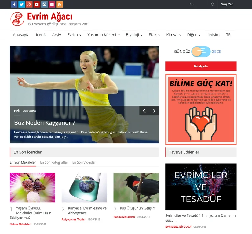 Evrim Ağacı 2019 yıl sonu raporu yayınlandı! 2019 yılında Evrim Ağacı, 366 yazarının yazdığı toplamda 660 yeni bilimsel içeriği yayınlayarak (ve düşük kaliteli olduğuna kanaat getirilen 650 eski içeriği silerek) içerik sayısını 7257'ye çıkardı, %310 büyüyerek 109.830 üyeye ulaştı; toplamda 11.9 milyon kullanıcı, toplamda 29.8 milyon kez içeriklerimizi görüntüledi (kuruluşumuzdan beri 75.1 milyon).