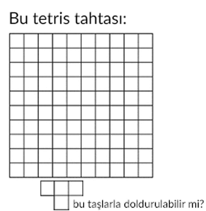 QuoraSizce yukarıdaki tetris tahtasını, sadece T-taşlarını kullanarak doldurabilir miyiz? Bir düşünün.