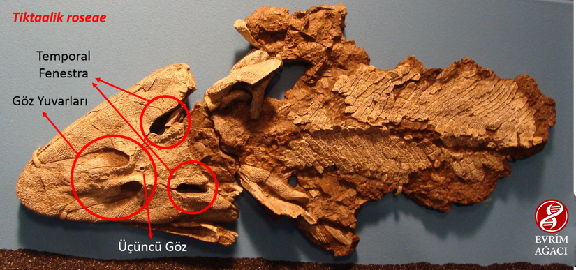 Ki bu bile, başlı başına Tiktaalik'in balıklarla sürüngenler arasında bir geçiş türü olduğunu doğrular. Çünkü balıklar, "anapsid" hayvanlardır. Kafataslarında hiç delik bulunmaz. Sürüngenler, dediğimiz gibi, diapsid canlılardır ve 2'şerden 4 delik bulunur. Tiktaalik ise, bunların tam arasında, iki tarafında 1'erden toplamda 2 deliğe sahiptir (göz yuvalarının hariç olduğunu hatırlayınız). Yalnızca göz hizasının üzerindeki deliklere sahip olan bu tür canlılara "eurapsidler" adı verilmektedir. Tıpkı Tiktaalik gibi, diğer bütün eurapsidlerin (plesiosaurlar ve benzerleri) soyu tükenmiştir. Ancak tıpkı diğer örnekler gibi, Tiktaalik de harika bir geçiş türüdür.