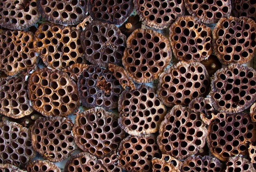 Tripofobi ("delik korkusu"), küçük deliklerden veya tümseklerden oluşan kümelere veya düzensiz örüntülere karşı duyulan tiksinti hissidir.[1], [2] Tripofobisi olduğunu iddia eden insanlar, yukarıdaki çilek fotoğrafı veya aşağıdaki lotus bitkisi gibi tripofobik görseller gördüklerinde mide bulantısı, iğrenme ve tiksinme gibi hisler deneyimlediklerini söylemektedirler. Tripofobik biri korku ve iğrenmeyi eşit olarak deneyimleyebileceği gibi, sadece korku veya sadece iğrenme de deneyimleyebilmektedir.