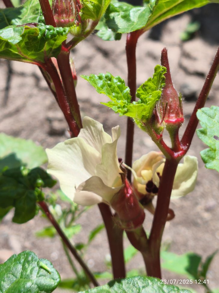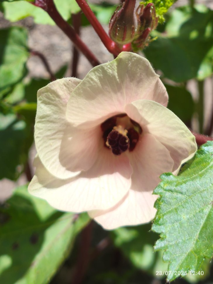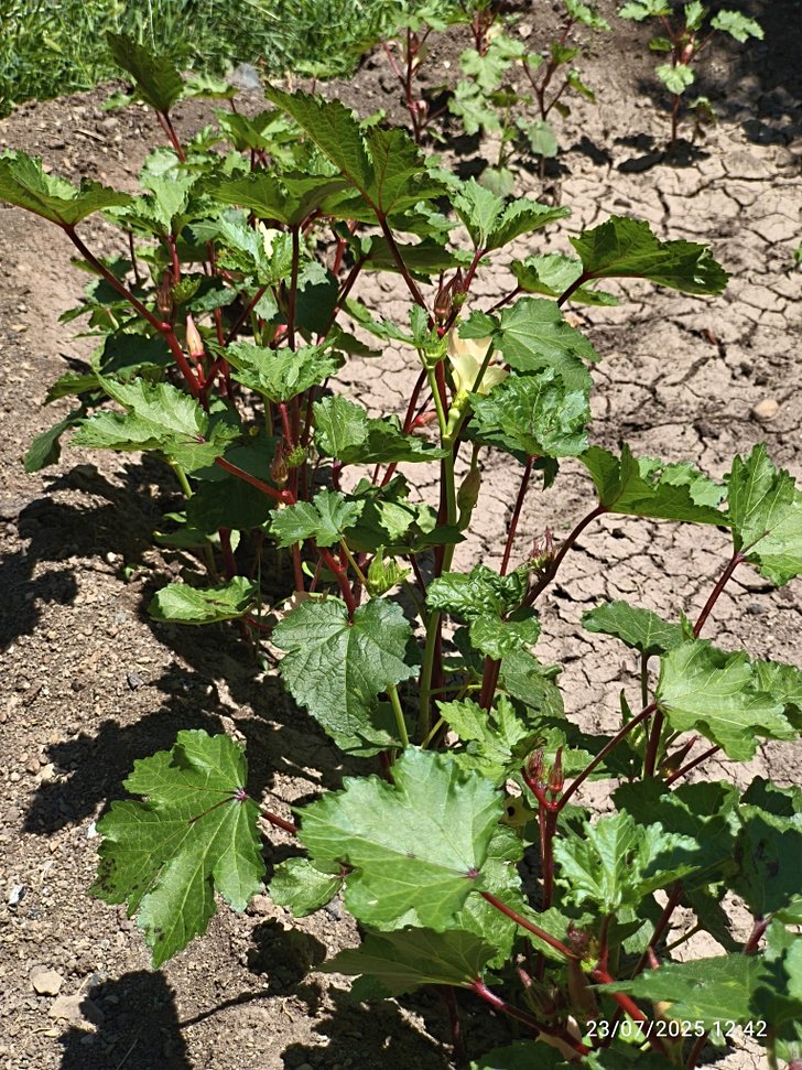 0.5-1.5 (-2) m kadar boylanabilen, dik gövdeli, tek yıllık (tropik iklimlerde çok yıllık) otsu bir türdür. Gövde sıklıkla borumsu, bazen kırmızıya çalar renkte, strigoz, tabanda odunsudur. Yapraklar eliptik-yuvarlağımsı formda, 5–25×5–30 cm boyutlarda, tabanı kalp şeklinde, 5–7 loblu; loblar üçgen biçimli, yumurtamsı, dikdörtgenimsi veya mızraksı, kaba testere dişli veya tırtırlı; her iki yüzü kıllı; yaprak sapı 5–35 cm uzunlukta; kulakçık 5–15 mm uzunluktadır. Çiçekler tekil, yaprak ile dal arasında; çiçek sapı 0.5–1.5 (-5)cm uzunlukta; dışçanak loblar 7–10 ( –12 ) adet, şeritsi-mızraksı , 0.5–18(–25)×1–2.5 mm boyutlarda; çanak 2–3 (–4) cm uzunlukta, ucu aniden sivrilen, kısa kabatüylü, 5 kısa şeritsi dişlidir; taç yapraklar beyaz veya çoğunlukla sarı , merkezde koyu eflatun renkte; ters yumurtamsı, 3.5–4.5(–8)×3–4 cm boyutlarda; yumurtalık konik veya yumurta biçimli, 1.2 cm uzunluktadır , 5(–9) bölmelidir. Meyve kapsül, 14 cm'e kadar uzunlukta, elipsoid formda, başlangıçta yapışık kılçıklı veya havlı, olgunlukta tüysüzdür .