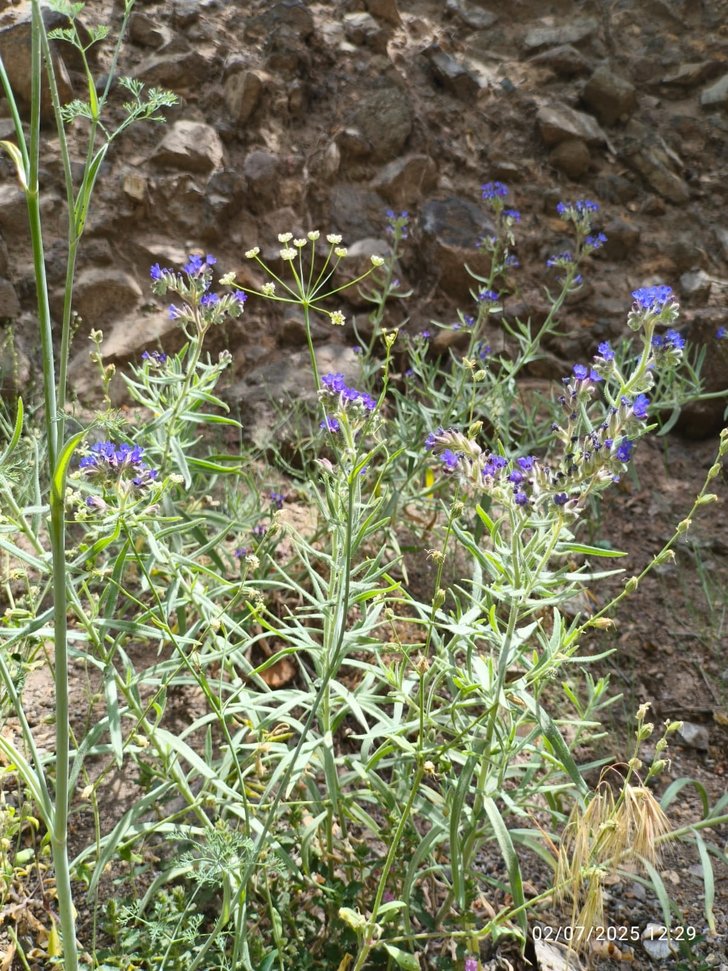 40-70 cm boylanabilen, iki yıllık veya çok yıllık, otsu bir türdür. Gövdeler dik gelişir, ± basit veya dallanmıştır, yüzeeyi sert kıllı veya kır tüylü-sert kıllıdür. Yapraklar şeritsi formda, 60-110 x 6-8 mm boyutlarda ve tam kenarlıdır. Çiçeklenme haziran-temmuz ayları arasında gerçekleşir. Çiçek kurulu ipeksi tüylü ve ± yayılı sert kıllıdır; meyvelenmeye doğru boyu uzar; brakte yumurtamsı-mızraksı ve küçüktür. Çanak 4-9 mm uzunluktadır, 1/3-2/3´ünden küt uçlu loblara bölünmüştür; meyvelenmeye doğru boyu uzar. Taç genellikle parlak mavi ve beyaz boyunludur, nadiren beyaz veya sarımsı olabilir; tüp 6-10 mm uzunluktadır, loblar 2-4 mm uzunluktadır. Sert kabuklu küçük meyve 2-3 x 2.5-4 mm boyutlarda ve eğik yumurta biçimlidir. Türkiye´de üç alttürü gözlenmektedir, bu alttürlerin ayrım anahtarı şu şekildedir.A. leptophylla subsp. tomentosa: çanak çiçek zamanı 7-9 mm uzunluktadır; tüp şeklindeki taç yapı 8-10 mm uzunluktadır. A. leptophylla subsp. incana: çanak çiçek zamanı 4-6 mm uzunluktadır; tüp şeklindeki taç yapı 6-8 mm uzunluktadır; çanak 1/2 veya daha fazlasından loblara bölünmüştür, tüy örtüsü bazen seyrek olmak üzere ± yayılı tüylüdür; gövdeler boylu boyunca ve bolca dallanmıştır. A. leptophylla subsp. leptophylla: çanak çiçek zamanı 4-6 mm uzunluktadır; tüp şeklindeki taç yapı 6-8 mm uzunluktadır; çanak yaklaşık 1/3´ünden loblara bölünmüş ve yoğun ipeksi tüylüdür; gövdeler sadece taban yakınından dallanmıştır.
