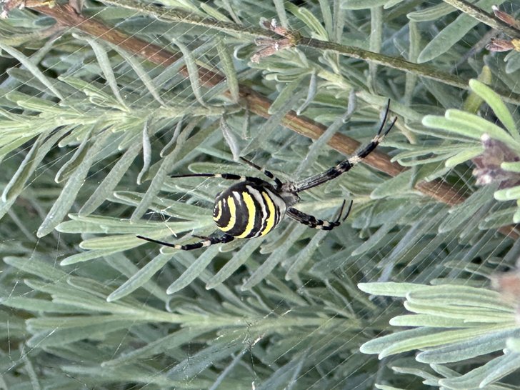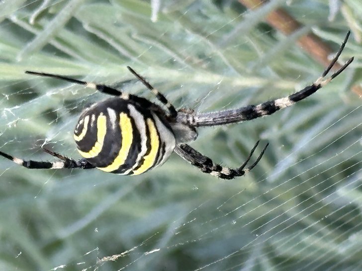 Yaban arısı örümceği (Argiope bruennichi), oluşturulması bir saat süren büyük, güzel ağlar örer. Ağın ortasındaki kalın, zikzak çizen çizgi, avını içeri sokmak ve çekmek için kullanılabilir. Adından da anlaşılacağı gibi, çeşitli yaban arısı türlerini sarma, ısırma ve enjekte etme yeteneğine sahiptir. Dişiler, çiftleşmeden sonra daha küçük erkekleri tüketir.