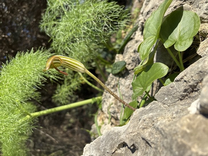 Yumrulu, 7-22 cm boyunda, çok yıllık ve otsu bir bitkidir. Yapraklar yumurtamsı-oksu, 4-12.5 x 3.5-9 cm, ana lob genellikle kısaca dikensi uçlu, yan loblar yumurtamsı, dikdörtgenimsi veya üçgen biçimli, küt uçlu; taban yüreksi; yaprak sapı 11-18 cm'dir. Çiçeklenme Kasım-Mayıs ayları arasında; yapraksız çiçek sapı 7-22 cm, dik, eflatun benekli; çiçek durumu çomak, 4.5-5.5 cm; spata 3-5 cm, alt kısım beyazımsı veya soluk yeşil, koyu yeşil veya eflatunumsu uzunlamasına çizgili, üst kısım koyu yeşil veya mat eflatunumsu-kahverengi; çomak yeşilimsi, uç kısım silindirik veya uca doğru kalınlaşır durumdadır. Çekirdeksiz/sulu/küçük meyve basık - küremsi, 8 x 10 mm boyutlardadır.