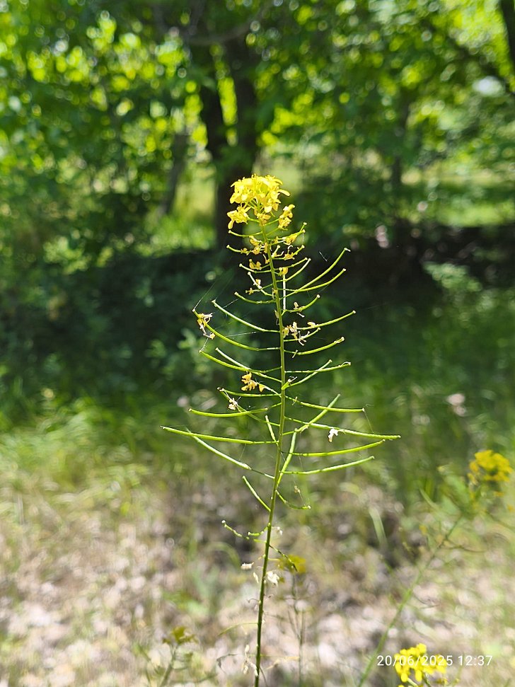 25-60 cm boylanabilen, iki yıllık, gürbüz, otsu bir türdür. Gövdeler tüysüzdür ve sıklıkla üst kısımlardan dallanmıştır. Alt yapraklar geniş, yassı ve kanatlı bir yaprak sapının ucunda geniş ve yumurtamsı-daire şekilli terminal yaprakçıktan oluşur; sap kanatları bazen 1 çift küçük yanal yaprakçık oluşturur. Üst gövde yaprakları sapı kavrar şekildedir ve kenarları küt dişlidir. Çiçeklenme Nisan-Haziran ayları arasında gerçekleşir; taç yapraklar sarı renkte ve 5-7 mm uzunluktadır. Baklamsı meyve yayılı, silindirik, küçük çıkıntılıdır ve yay gibi büküktür, 24-35 x 1.5-2 mm boyutlardadır.