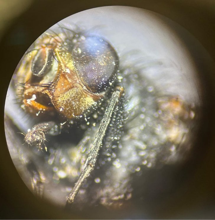 Stereo mikroskop yardımıyla: Bucca'nın turuncu yüzeyli ve siyah kıllara sahip olduğu karakteristik morfolojik özelliği görülmektedir. Parafacial bölgesinin turuncu ve üzerinde kıl olmadığı görülmektedir.