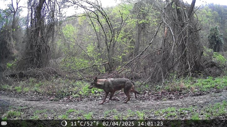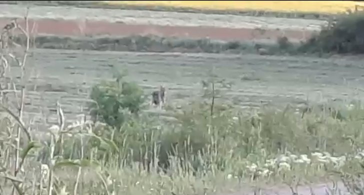 Muhtemelen hasta bir bozkurt. Kendini uzun süre gosterdi ve çok yavaş hareket ediyordu.