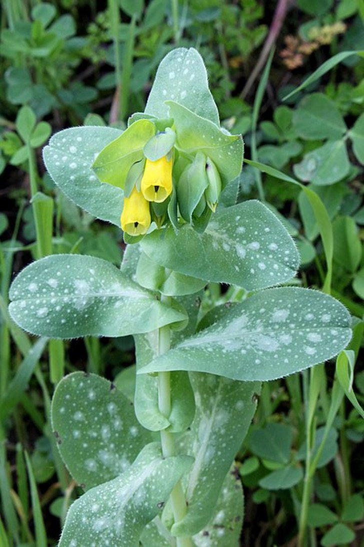 18-40 cm boylanabilen, tek yıllık, otsu bir türdür. Gövde dik, basit veya üst kısımları dallanmıştır. Dip yapraklar ters yumurtamsı formda, 5 x 1.8 cm boyutlarda, küt uçlu, yaprak ayası dışbükey, kenarlar yaprak sapına doğru iç bükey, yaprak sapı kısa; gövde kısmındaki yapraklar dikdörtgenimsi-eliptik formda, 6.5 x 2.5 cm boyutlarda, sapsız, dip kısmı dalı kavrayan/saran yapıdadır. Çiçeklenme Mart-Mayıs ayları arasında; brakte eflatuna çalar renkte; çanak hemen hemen tabana kadar bölünmüş, loblar mızraksı-eliptik, keskin uçlu veya sivrimsi ve kirpikli; taç yapı tüp şeklinde, sıklıkla altta eflatun, yukarıda sarı, 18-23 x 6-8 mm boyutlarda, düz, loblar çok kısa ve geriye doğru kıvrımlıdır. Meyve sert kabuklu, 4.5 x 3 mm boyutlarda, yumurtamsı-küremsi ve koyu kahverengi renktedir.