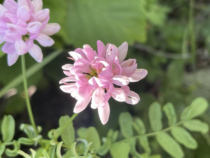 Dağlık alanda pembe renkli coronilla çekimi yapılmıştır.