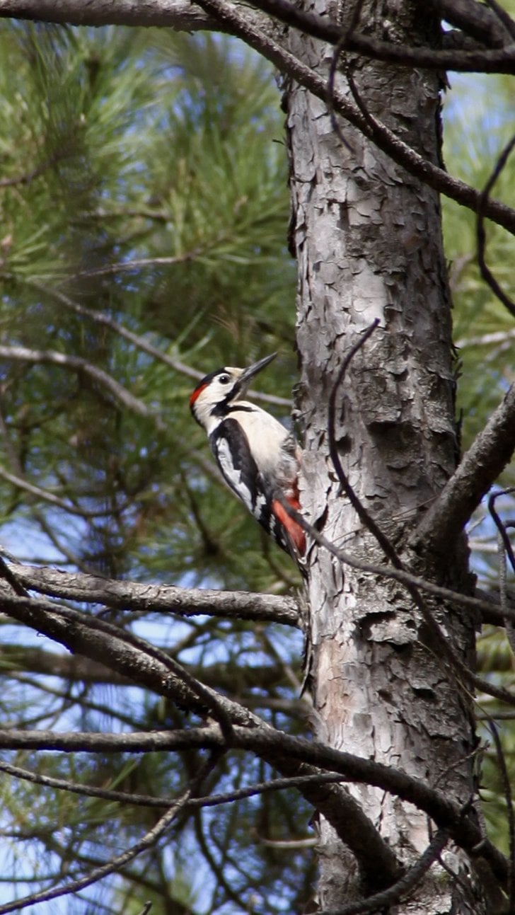 Hacettepe Üniversitesi Beytepe Kampüsü'nde gördüğüm Alaca Ağaçkakan, kafa arkasındaki kırmızı banda ve ensedeki siyah bantın birleşmediğine dikkat edelim.