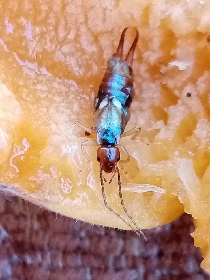 Kayısı meyvesini delerek içerisine giren dişi bir kulağakaçan. Bulduğumda karın bölgesinden yaralanmıştı. Bu gözlem 20 Temmuz 2023 tarihinde Kayseri'nin Felahiye ilçesinde düşük çözünürlüklü telefon kamerası ile 39°05'14.0"N 35°33'47.5"E koordinatlarında yapılmıştır.