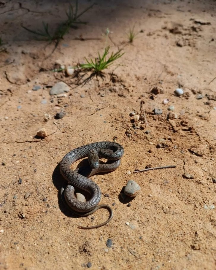 Tekirdağ Malkara Korudağları bolgesinde juvenil bir hazer yilani . Habitat çam meşe ve taşlık