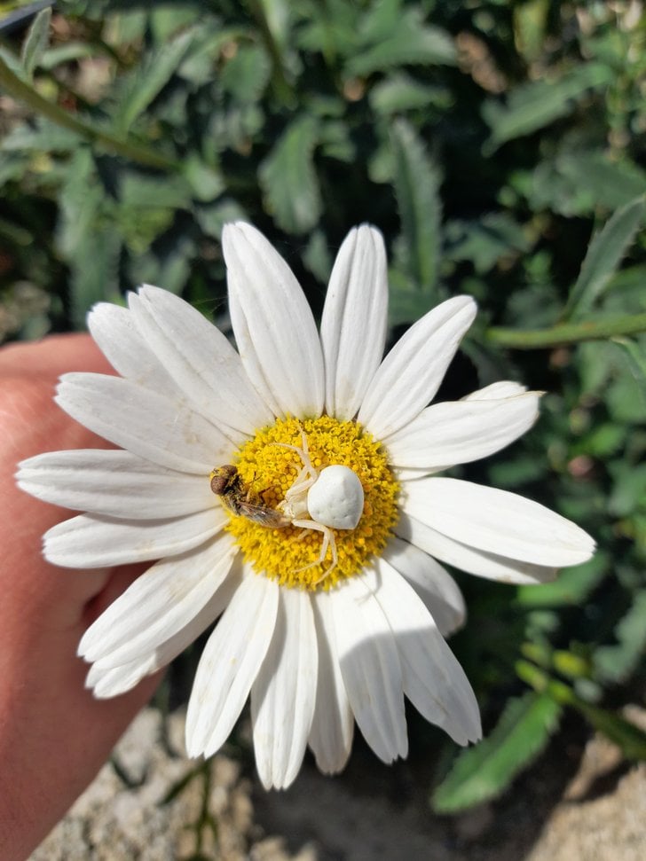 Gerçek yengeç örümcekleri diye bilinen Thomisidae ailesine üye bu örümceklere aynı zamanda çiçek örümceği de denir. Thomisidae örüceklerine "gerçek" yengeç örümceği denir; çünkü Philodromidae örümcekleri ile fazla benzerlik taşırlar. Gözlemlediğimiz bir Philodromid yengeç örümceği kaydına buradan ulaşabilirsiniz. Thomisidae yengeç örümceklerinin ön ayakları, arka ayaklarından daha uzundur. İsmini yengeç benzeri davranış sergilemesinden alır. Abdomeni (karnı) de üçgen benzeri köşelidir. Avlanırken ön ayakları açık durur ve yan yan yürür. Ağlarını sadece yumurtalarını korumak için kullanırlar. Diğer birçok örümcek türü gibi zehirlidirler; ancak zehirleri insan gibi büyük memelilerde etkisizdir. Ağız parçalarının ana kısmını oluşturan keliserleri (dişleri) oldukça kısadır. Bu yüzden büyük hayvanları ısırmaları beklenmez. Avını yakalayan örümcek, salgıladığı zehir ile kurbanının iç organlarını parçalar ve adeta sıvılaştırarak emer.  Daha fazla bilgi almak için buraya tıklayın.