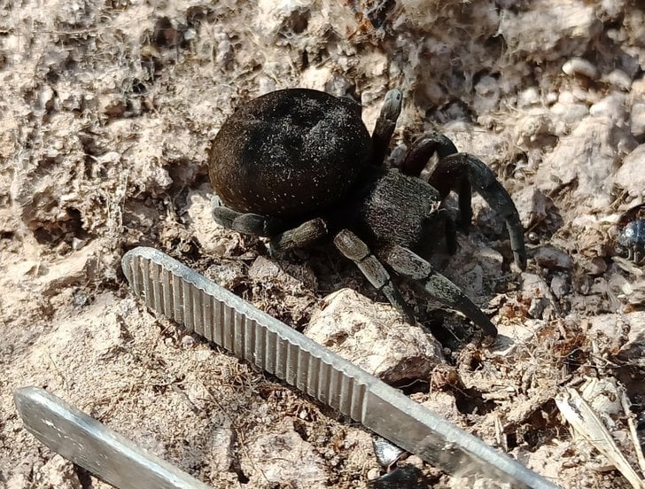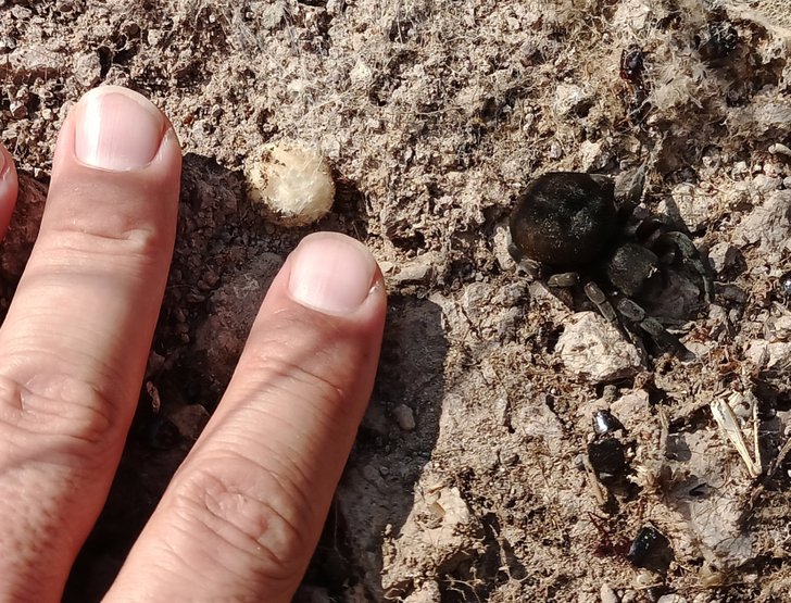 Henüz tam olgunlaşmamış genç bir dişi. Erkeği kadar gösterişli görünmese de çok etkileyici bir görüntüsü var. Eresus oldukça uysal bir tür. İnsanda eline alıp sevme isteği uyandırıyor, ancak zehirli olması caydırıcı bir neden. Boyutunun belli olması için elimi referans alacak bir fotoğrafını da ekliyorum.