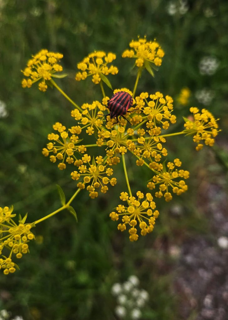 Ferulago sylavatica üzerinde bir Graphosoma Sp. Bitkinin tür adı Latince ''ormanda'' anlamına gelir ve açık bir şekilde türün ormanlık alanlarda görülmesine işaret eder. Tüketilen kişniş bitkisi Coriandrum sativum'dur. Aynı ailedendirler ancak bu türün yenilebilir olduğuna dair kayıt bulunmamaktadır.