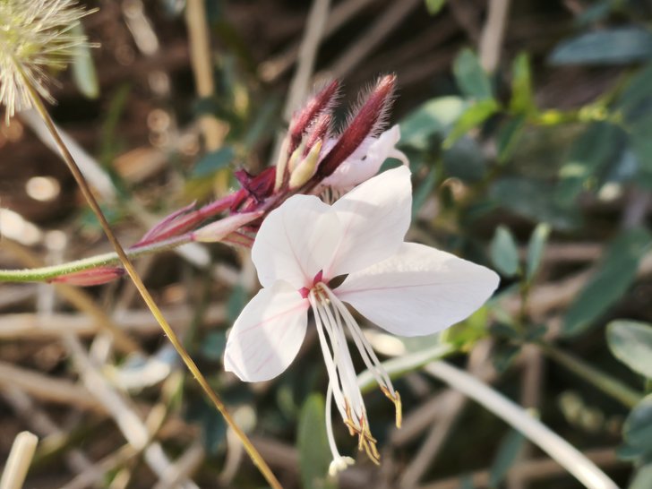 Ilıman iklimlerde erdem yeşil, ilkbahardan yaz sonuna kadar bol çiçek veren çok yıllık çalımsı bitkilerdir. 1.5m'ye kadar boylanabilir, 1m'ye kadar çap yapabilirler. Dalları toprak altından çok sayıda sürgünler halinde yukarıya doğru dik çıkarak gelişir. Düz yeşil – kırmızı karışımı alacalı, mızrak şeklinde dekoratif yaprakları vardır. Çiçekleri köklerinden çıkan, ince uzun çiçek sapları üzerinde seyrek olarak bulunur. Çiçekler 2.5cm çapında ve 4 petallidir. Yeni açan çiçekleri sabahları beyaz renklidir ve renk akşam saatlerinde pembeye döner. İyi güneş alan yerleri severler. Soğuk iklime dayanıklıdır.