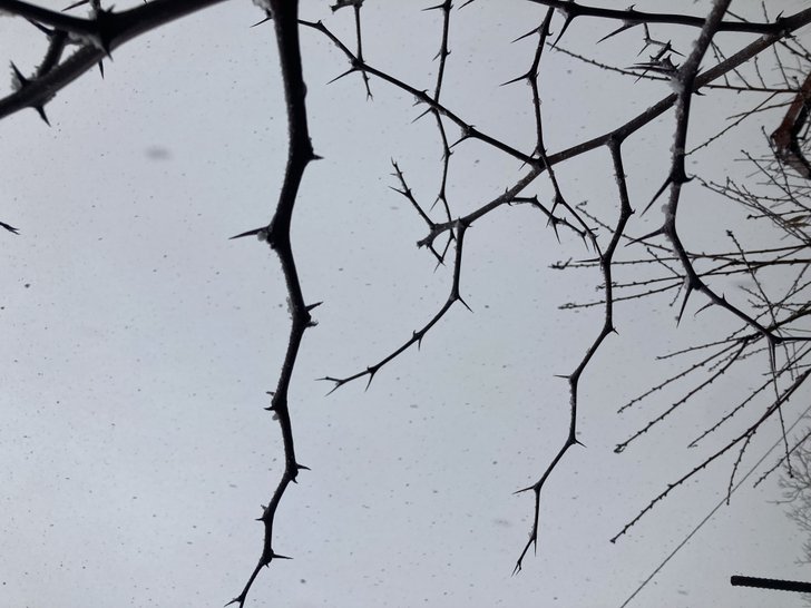 Altıgen biçimde dal gelişimi üç dikenli akasya siyah renk odunsu gövde
