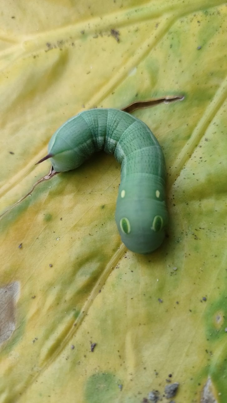 Bodrum/Gündoğan'da görüldü. Tür adı Hippotion celerio olan bir güve. Fotoğraftaki ise daha erişkinliğe ulaşmamış olan tırtıl evresi.