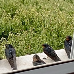 Gene Tepeköy'de ani sağanak yüzünden mutfak penceresinin önüne sığınmış kırlangıçlar.