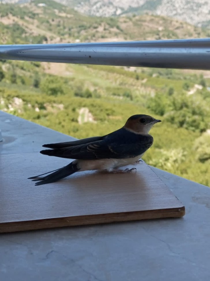 Tepeköy yaylasında balkona konmuş bir kır kırlangıcı. Evin kenarında yuvaları var, sürekli dolaşıyorlardı, sonunda fotoğrafını edindim.