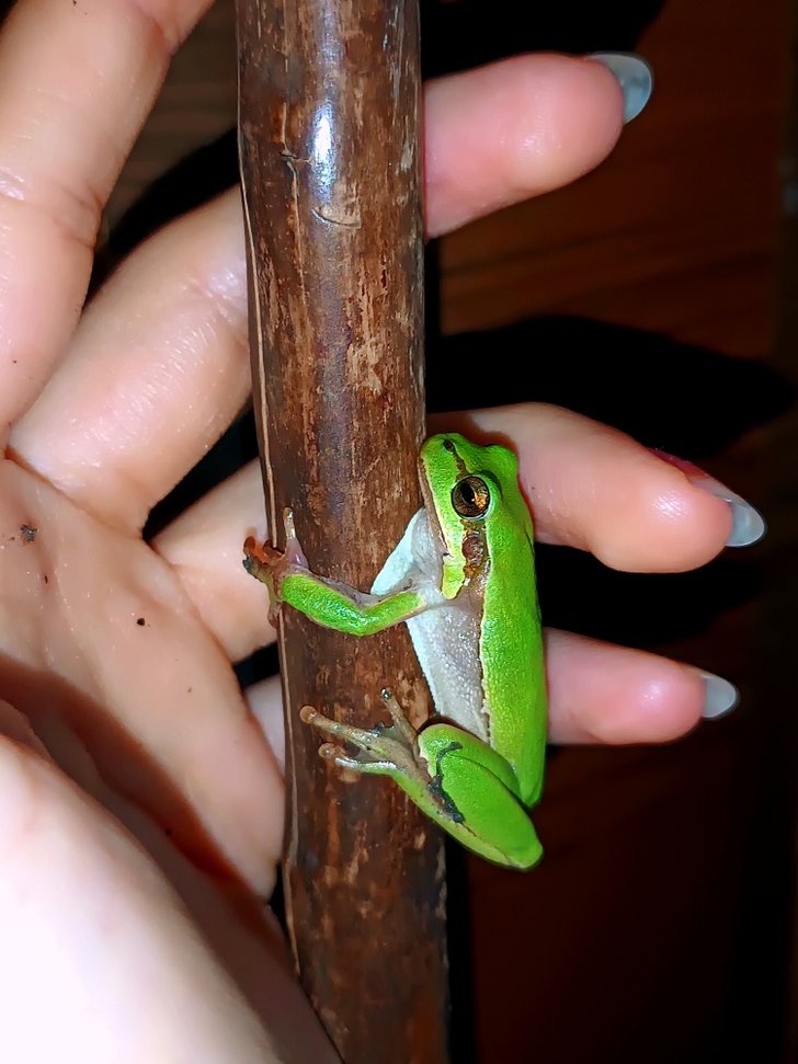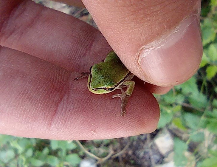 Geçen ay Mersin, Tepeköy'de bahçede otların arasında sürekli ağaç kurbağaları dolaşıyordu. Muhtemelen kurbağalaeın karaya çıktığı bir zamandı çünkü her yerde fazlaca kurbağa vardı ve fotoğraftaki gibi oldukça küçüktüler.