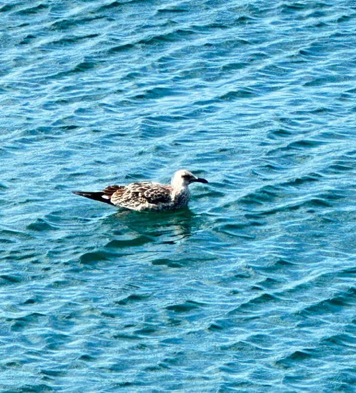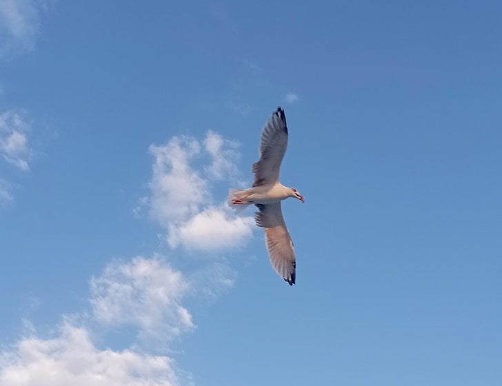 Vapurda giderken gördüğüm, ağzında simit parçası olan bir gümüş martı.
