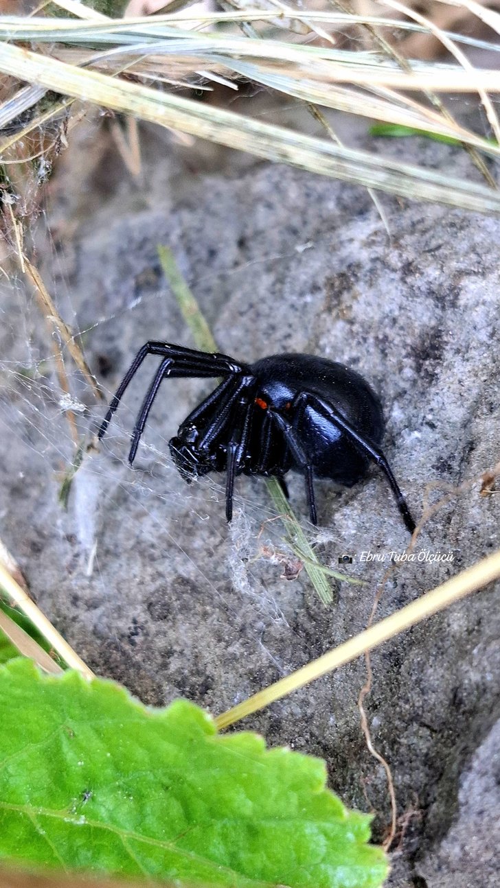 Parlak siyah renkli, küresel abdomenli. Abdomenin dorsal kısmında küçük kırmızı bir leke mevcut. Bacaklar uzun ve narin yapılı, vücutla orantılı biçimde hareketli. Dişi bireylerin zehri nörotoksiktir ve insanlar üzerinde etkili olabilir. Isırıklar genellikle lokalize ağrı, kas krampları, terleme ve bulantı gibi semptomlara neden olur.
