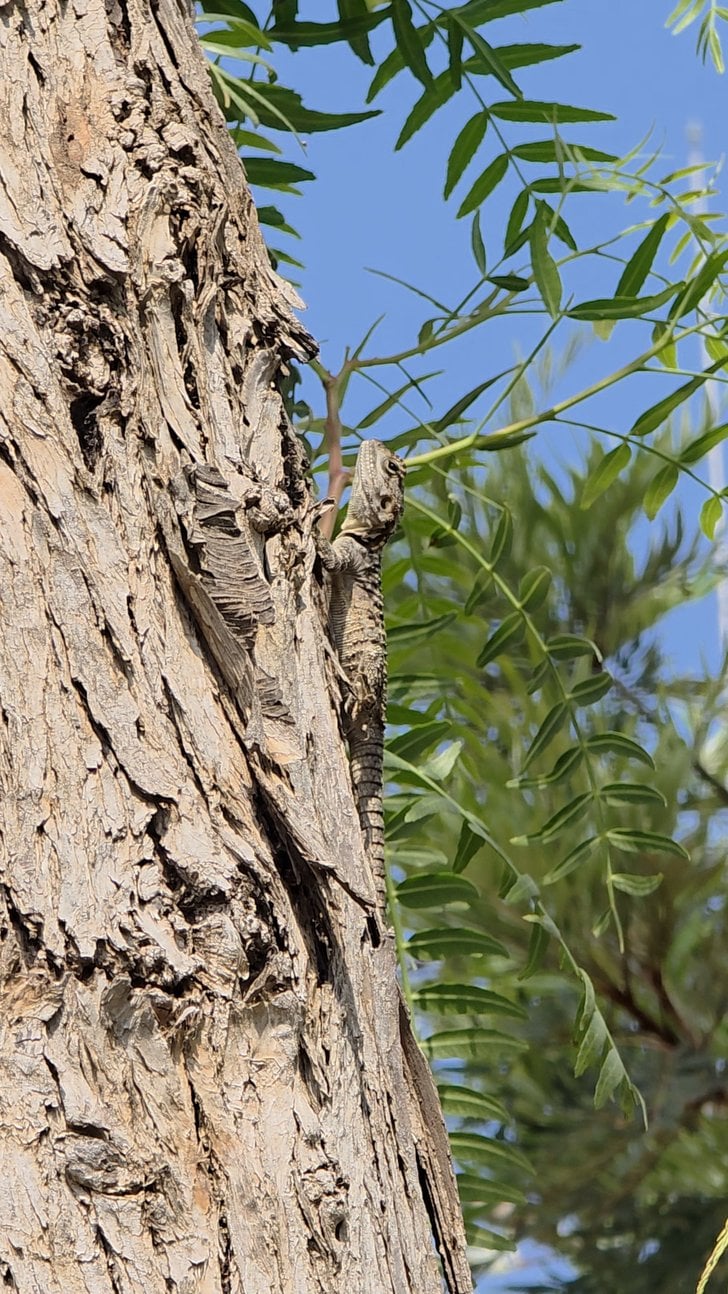 Derisinin dokusu ve renk deseniyle çevreye müthiş uyum sağlar. Tehdit ile karşılaştığında yandan kaçış yapar, zikzaklar çizerek koşar. İri bireylerde kuyruk sallama ve ağız açma gibi davranışlar görülebilir. Kuyruk koparma (ototomi) nadiren görülür ama bazı bireylerde savunma olarak kullanılır.