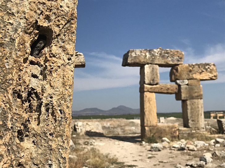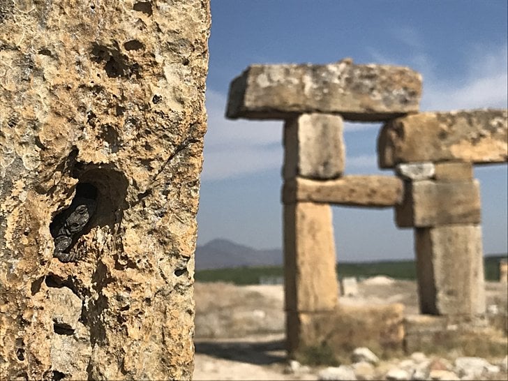 Blaundus antik şehrinin harika atmosferinde poz veren dikenli keler.