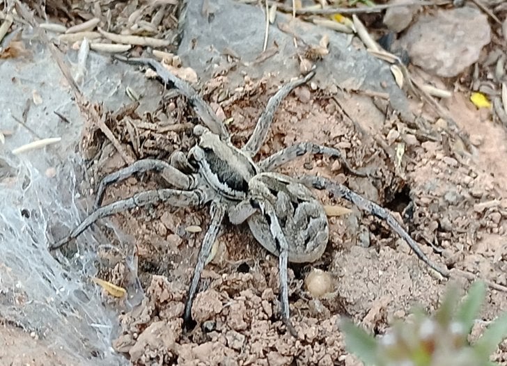 Kurt örümcekleri (Lycosidae) ailesi içerisinde bulunan en iri türlerden biridir. Boyut olarak gövdeleri 2-3 cm arasında (bacak dahil değil) değişir. Abdomeni (karnı) açık gri ve toprak rengindedir. Bacaklarında siyah şeritler, pedipalplarında (ağız kenarındaki ufak uzuvlar) siyah noktalar bulunur. Karın altında turuncu kontrastları da mevcuttur. Muhteşem görme yetenekleri vardır. Kurt örümcekleri yumurtalarını, karında bulunan ağ püskürten spinneret (memecik) organlarına bağlı tutar. Genelde iki büyük gözün altında 4 küçük göz ile tanınırlar. Tepede ise iki tane laterale (yanlara) bakan göz vardır. Daha fazla bilgi almak için buraya tıklayın.