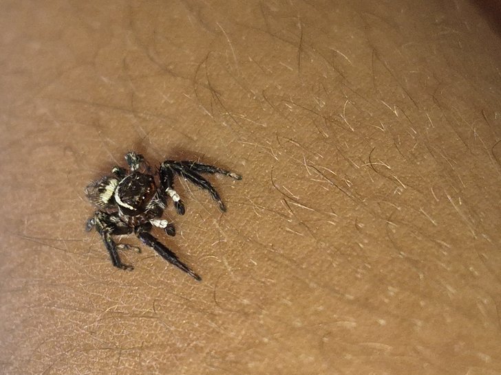 Evimin duvarında onu sinek gözetlerken yakaladım. Çok hızlı ve uzun mesafe zıplayışı yapabiliyor. Çok sevimli bir örümcek türü