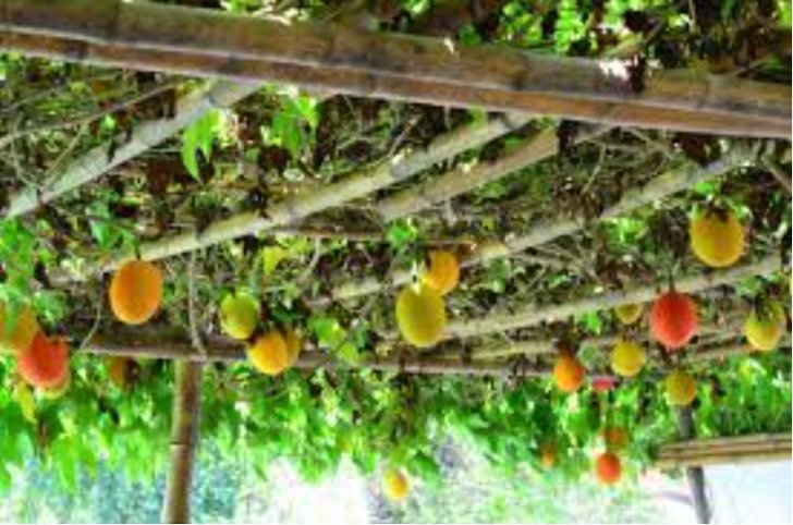 Aynı üzüm gibi yetiştirilen bir gac ağacı ve sadece birkaçı olgunlaşmış meyveleri.