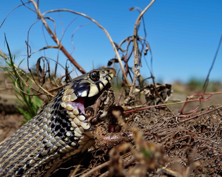 Kızılırmak deltasında avlanırken gözlemlediğim küpeli su yılanı. Avı ise Ova kurbağası