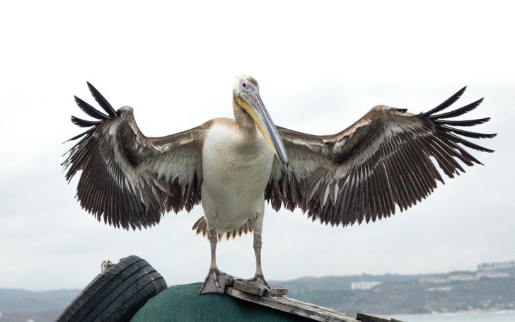 İstanbul'un kuzeyi şile limandan genç bir ak pelikan