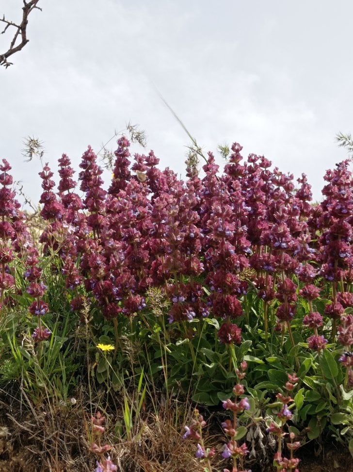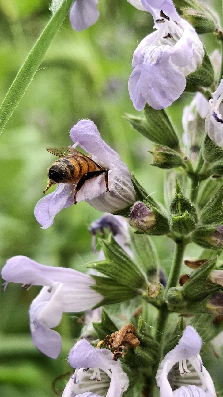 Yeşil buruşuk yaprakları, hafifçe kıvrılmış ve kenarları dişlidir. Sapların dört kenarı vardır, glandüler ve yumuşak tüylerle kaplıdır. Çiçekler 2,5 cm'ye kadar büyüyebilir ve 30,5 cm'ye kadar büyüyen çiçek salkımı oluşturabilir. Cins adı Latince iyileştirici anlamına gelir. Mitolojiye göre, Europa’nın kardeşi ve Semele’nin babası olan Fenikeli kral Kadmos, adaçayının özelliklerini ilk keşfedendir. Bunun izinden giderek Yunanda Zeus, Roma’da ise Jüpiter’in kutsal bitkisi olmuştur.