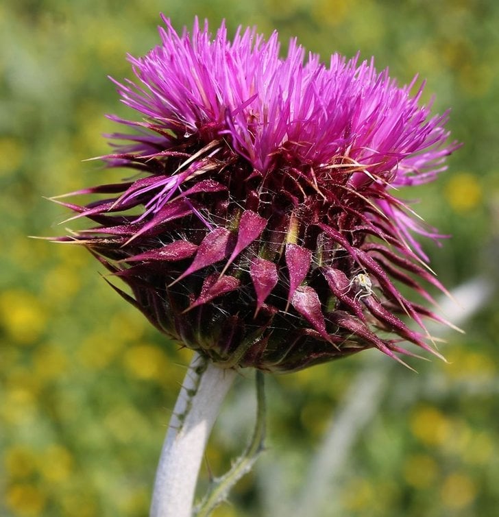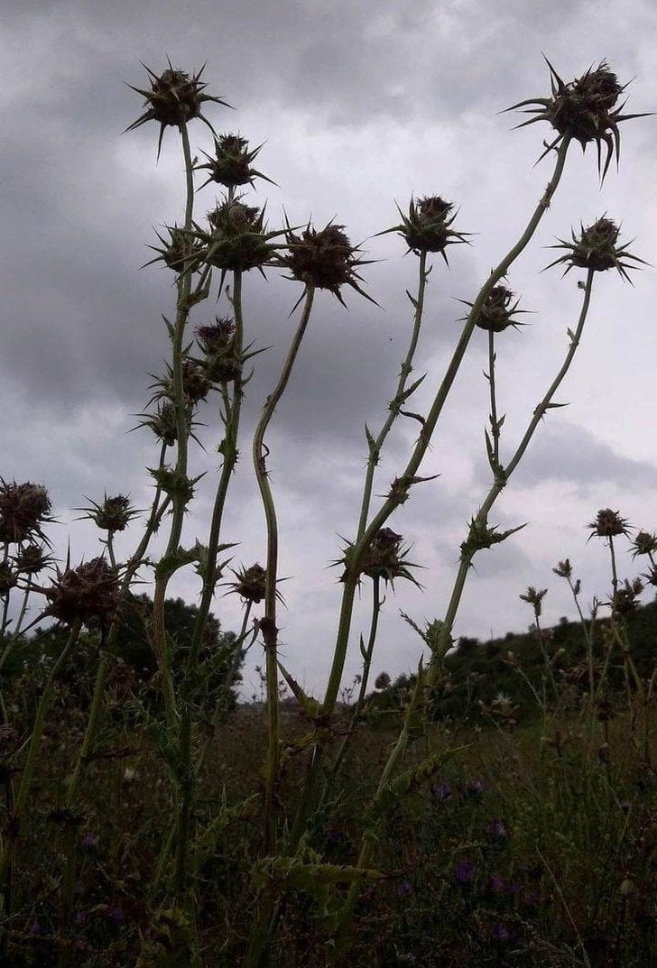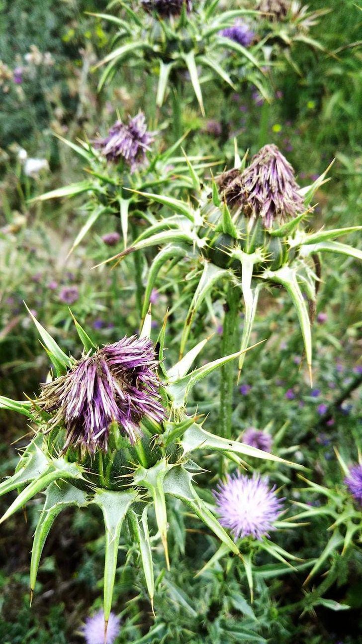 Süt devedikeni, kutsanmış deve dikeni, Marian devedikeni, Meryem deve dikeni, Aziz Meryem deve dikeni , Akdeniz deve dikeni , alacalı deve dikeni ve İskoç deve dikeni ( Onopordum acanthium veya Cirsium vulgare ile karıştırılmamalıdır) olmak üzere çeşitli ortak isimleri vardır. Bu tür Asteraceae familyasına ait yıllık veya iki yıllık bir bitkidir . Bu oldukça tipik deve dikeni kırmızı ila mor çiçeklere ve beyaz damarlı parlak soluk yeşil yapraklara sahiptir.