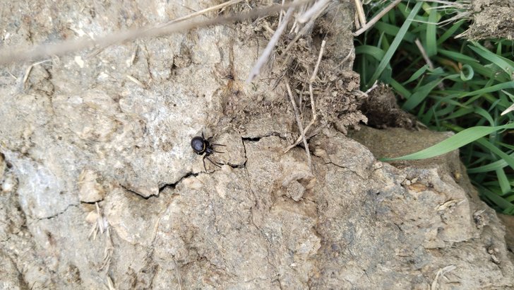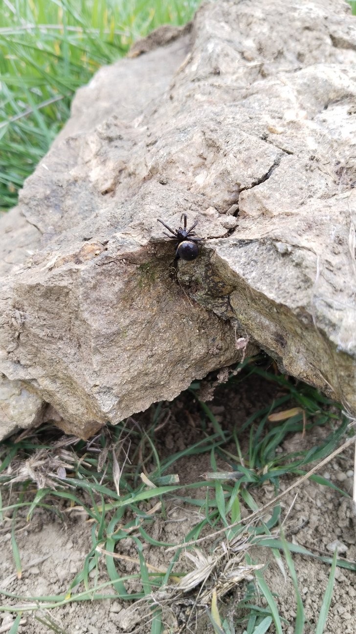 Nemli bir köy tarlasındaki bir kayanın altı.