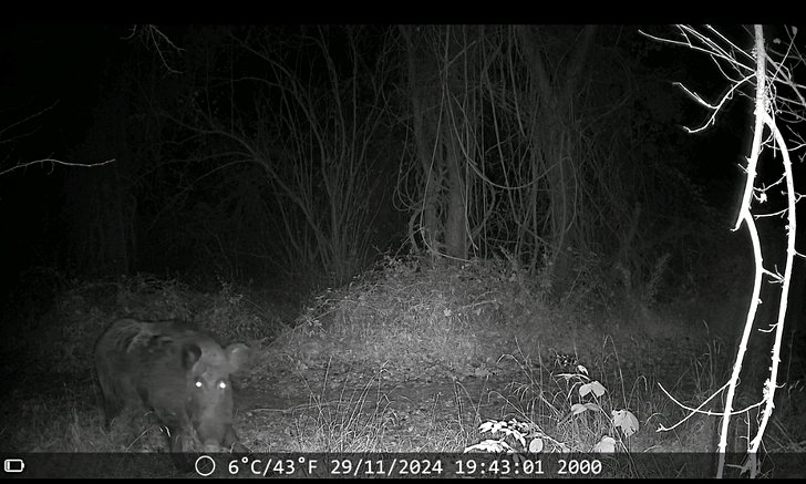 Fotokapanima takilan bir yaban domuzu