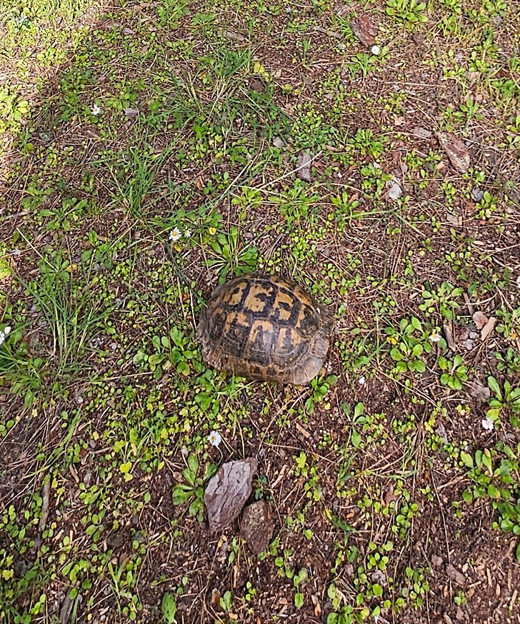 Kırsal bitki örtüsüyle kaplı dağlık bir bölgede geözlemlendi. 1 ay içinde aynı bölgelede 3 defa gördüm, üçünün de aynı kaplumbağa olduğunu düşünüyorum.
